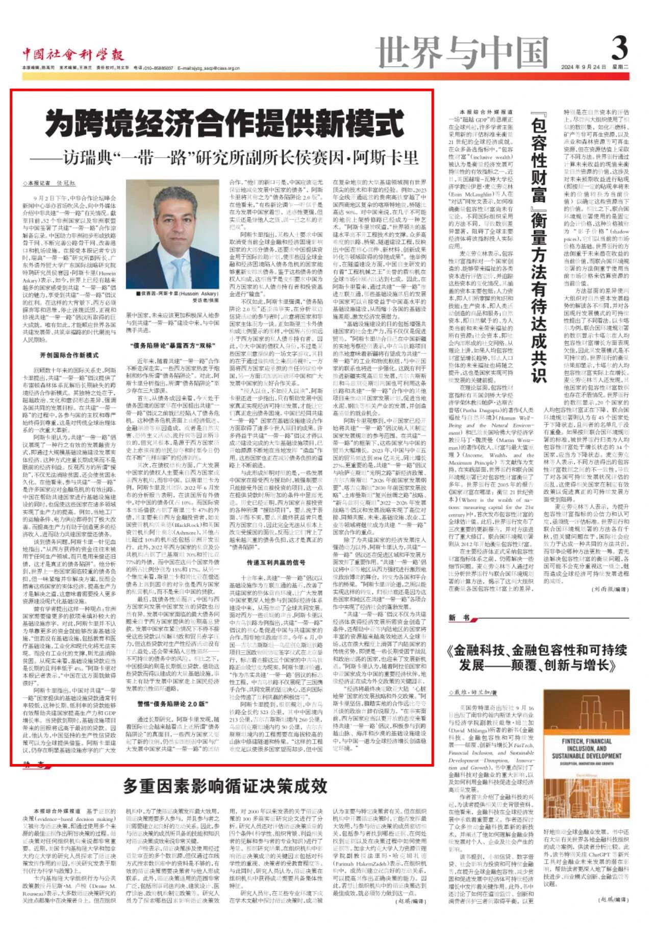 回顾数十年来的国际关系史,阿斯卡里提出,共建“一带一路”倡议提供了布雷顿森林体系瓦解后长期缺失的跨境经济合作新模式。其独特之处在于超越政治、文化和意识形态差异,强调各国共同的发展目标。在共建“一带一路”过程中,各参与国的主权和尊严始终得到尊重,这是对传统全球治理体系的一次重大革新。