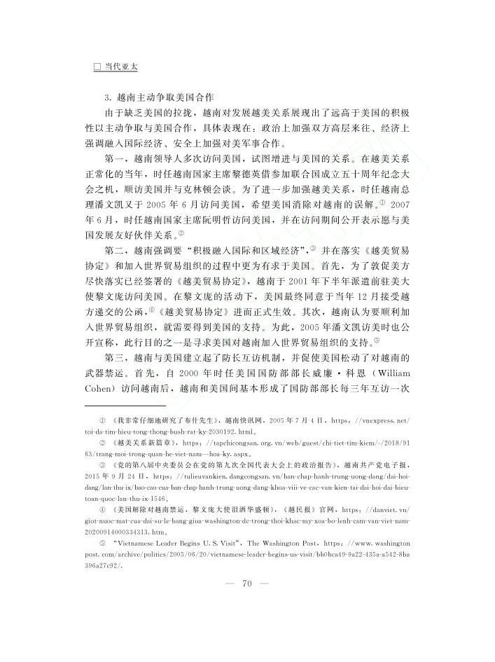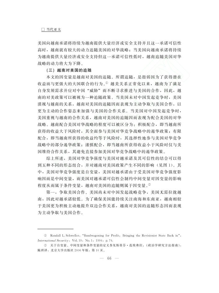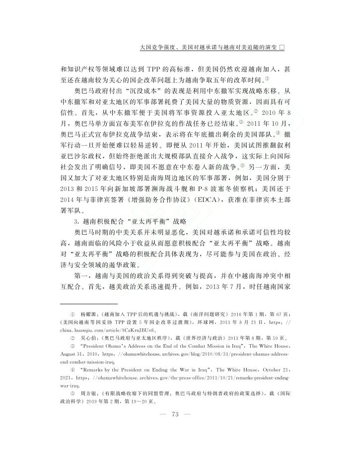 关键词:越美关系;“亚太再平衡”;“印太”战略;承诺可信性;追随