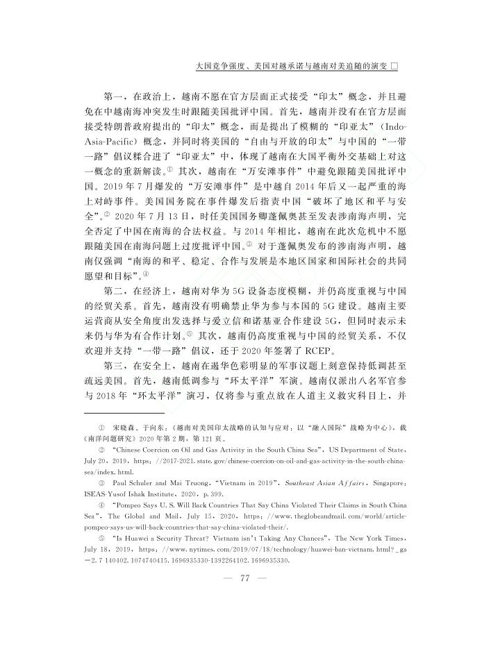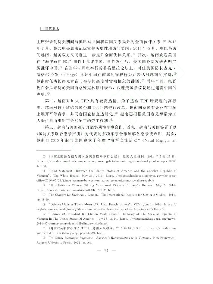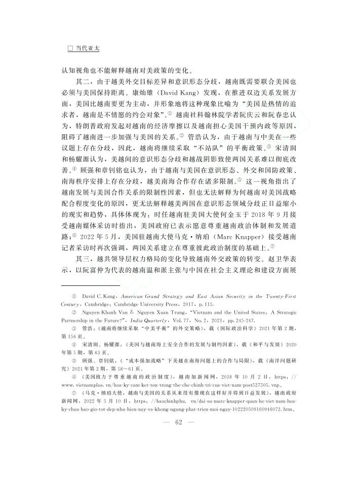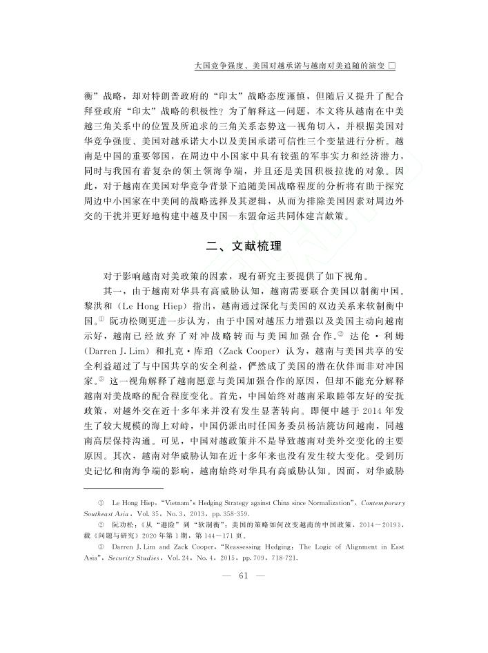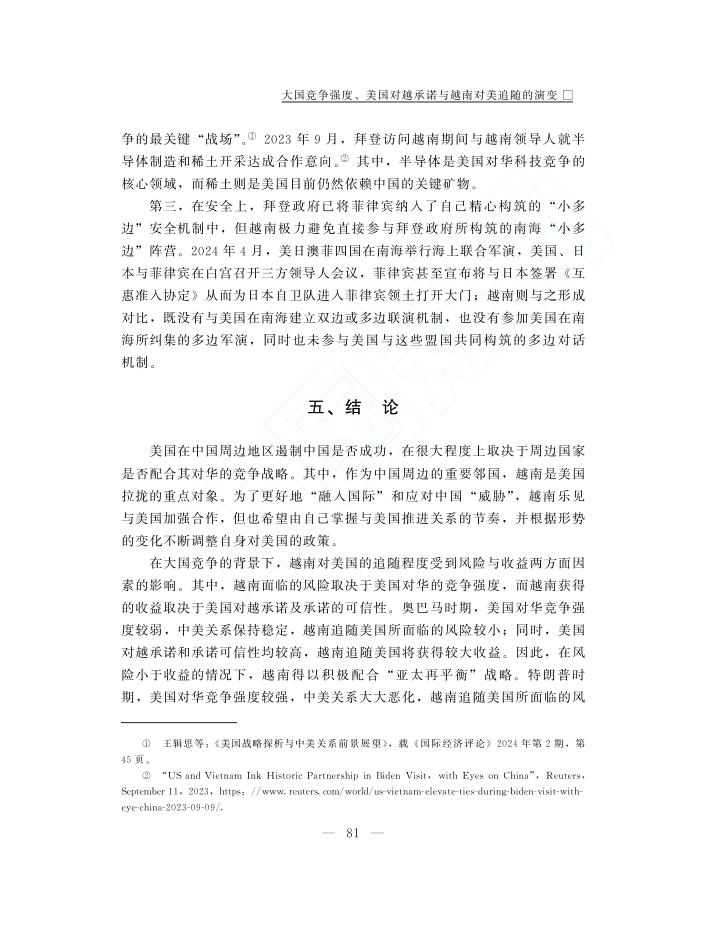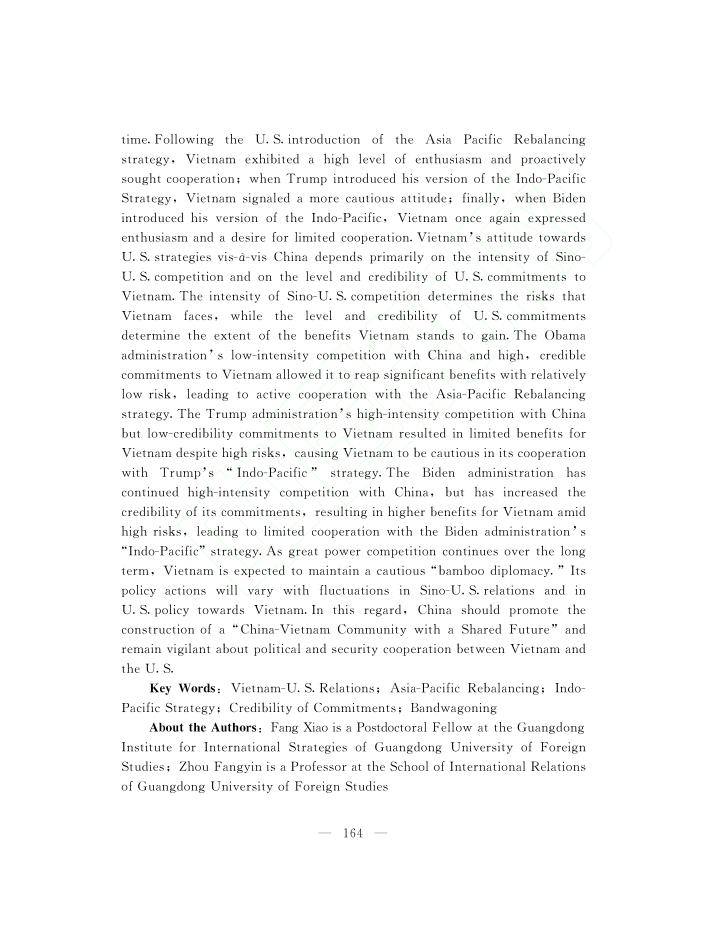 方晓、周方银:大国竞争强度、美国对越承诺与越南对美追随的演变