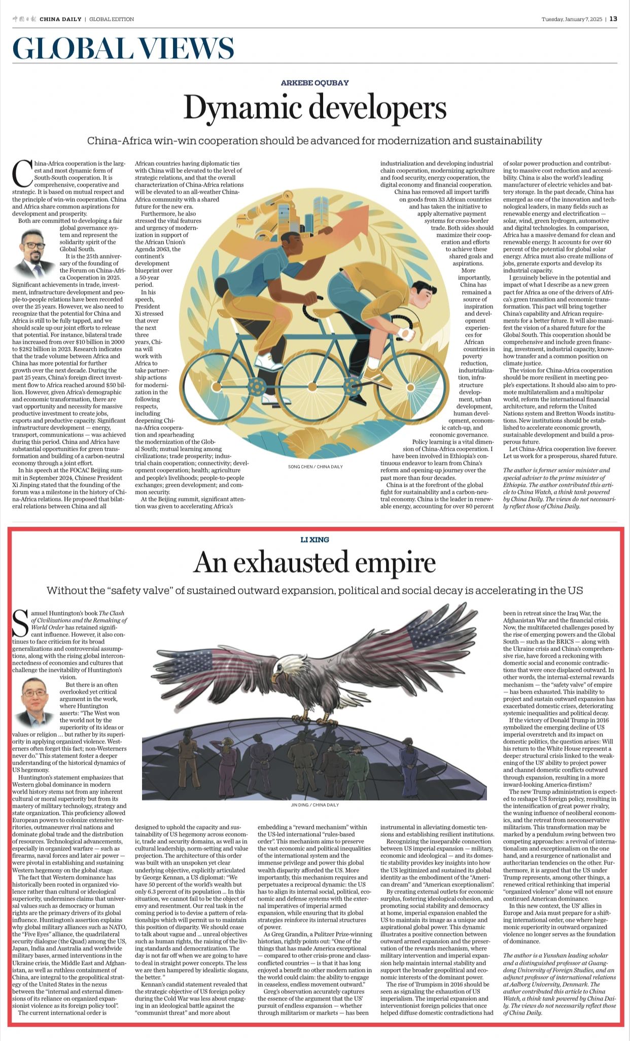 自伊拉克战争、阿富汗战争及金融危机后,美国扩张乏力,“特朗普主义”兴起象征其帝国主义扩张的转变,如今美国面临诸多挑战。近日,我院云山领军学者、丹麦王国奥尔堡大学兼职教授李形在中国日报中国观察智库发表了题为《An exhausted empire》的文章。