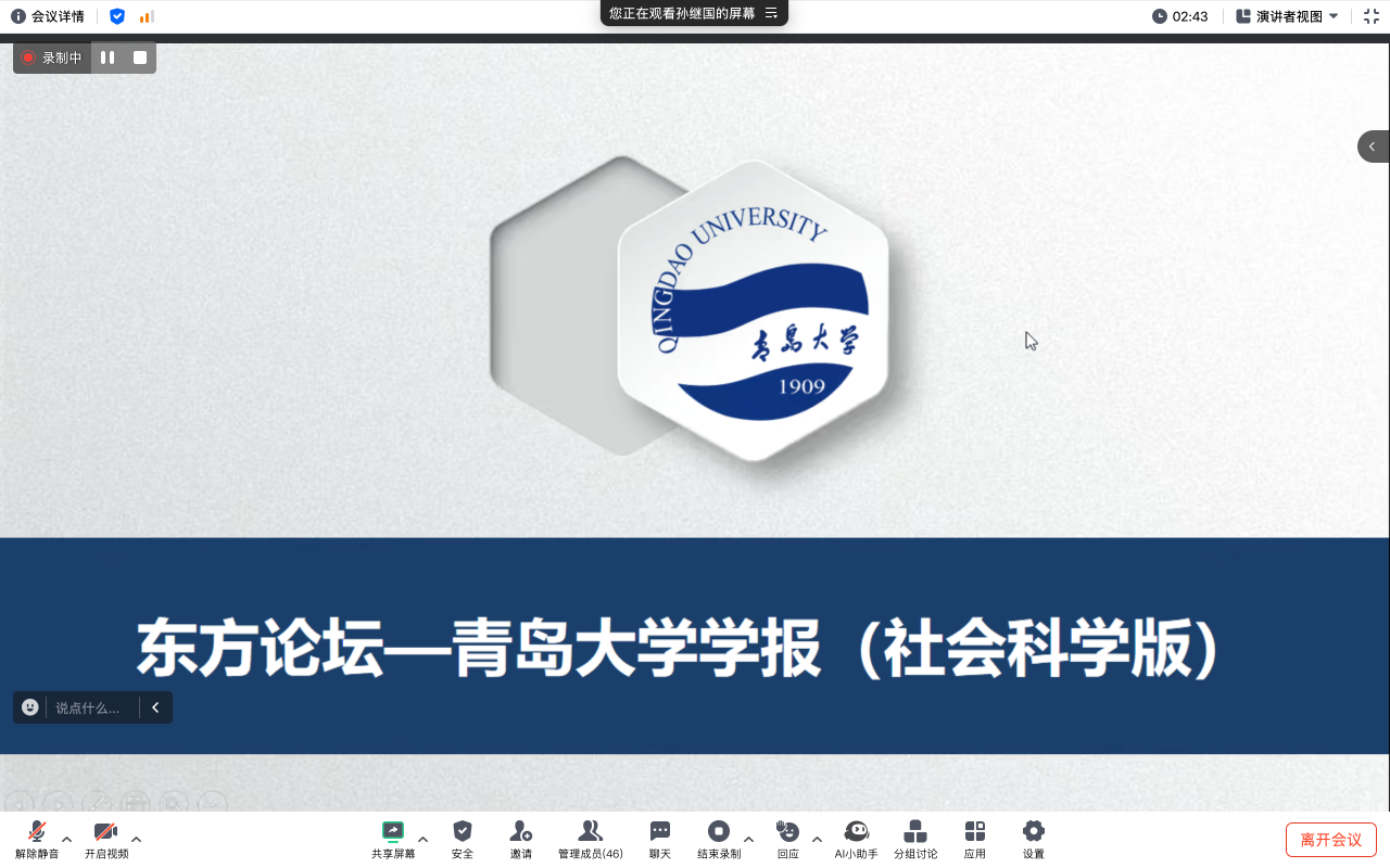 《管理世界》杂志社编辑部主任闫姸老师对期刊的基本情况做了简要介绍,并说明了期刊审稿程序以及所关注的选题。