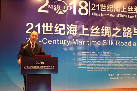 2018年11月10日,由广东省人民政府、“一带一路”智库联盟指导,广东国际战略研究院、中联部当代世界研究中心共同主办的21世纪海上丝绸之路国际智库论坛2018在广州举行。校党委书记、广东国际战略研究院常务副院长隋广军教授主持论坛。
