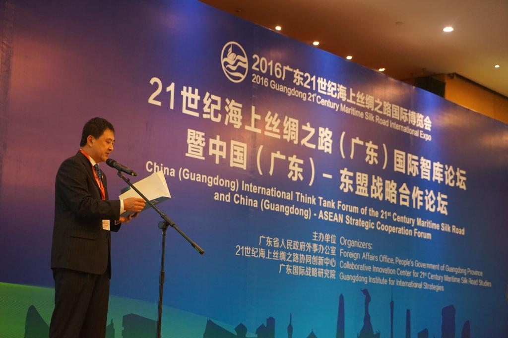 10月28-30日,2016广东海上丝绸之路国际博览会高端论坛分论坛——21世纪海上丝绸之路(广东)国际智库论坛暨中国(广东)—东盟战略合作论坛、中国—东盟产能合作研讨会在穗举办。系列会议聚焦国际产能合作,深入研讨“一带一路”框架下中国与海上丝绸之路沿线经济体,尤其是东盟国家在基础设施建设、国际产能合作、经济贸易往来等方面存在的机遇、挑战与实施路径。产能合作系列会议由广东国际战略研究院、21世纪海上丝绸之路协同创新中心主办,外交部、商务部、广东省政府及省委政研室、省府发展研究中心、省商务厅、省外办、省贸促会、广州市贸促委等单位对会议予以重要支持。系列会议由广东外语外贸大学党委书记、广东国际战略研究院常务副院长、21世纪海上丝绸之路协同创新中心主任隋广军教授主持。